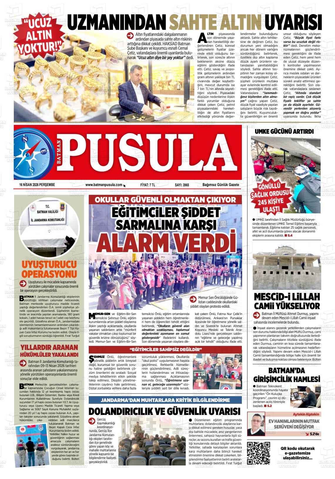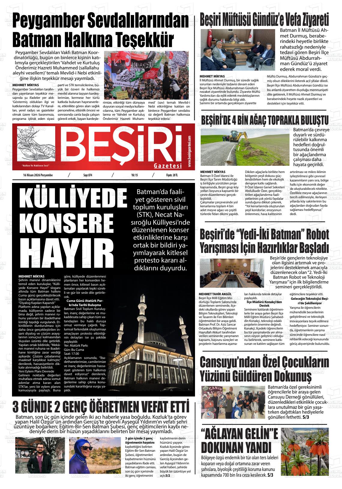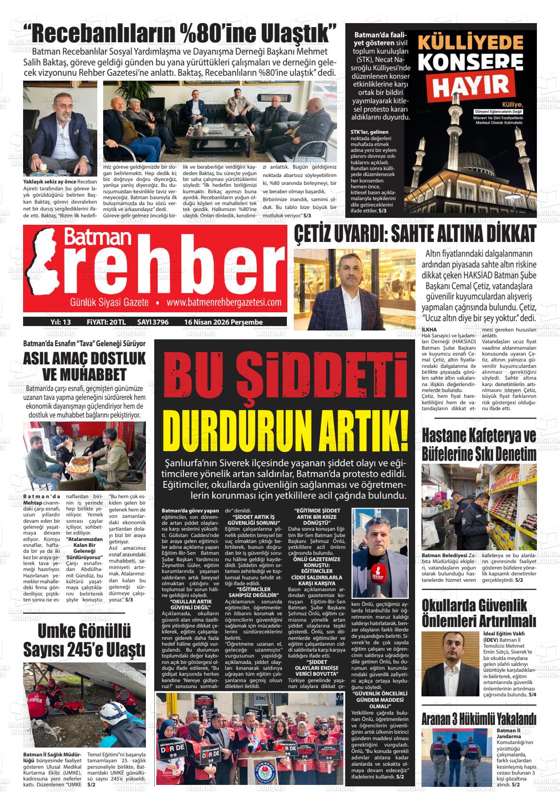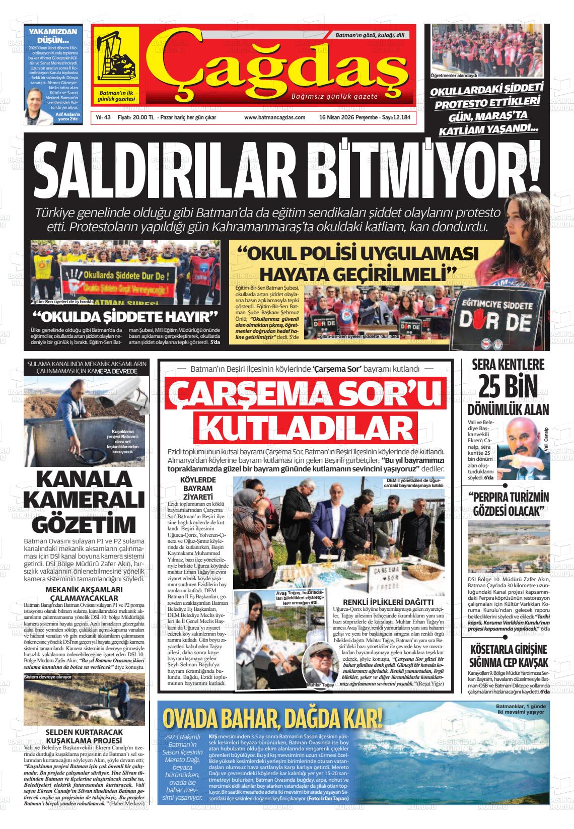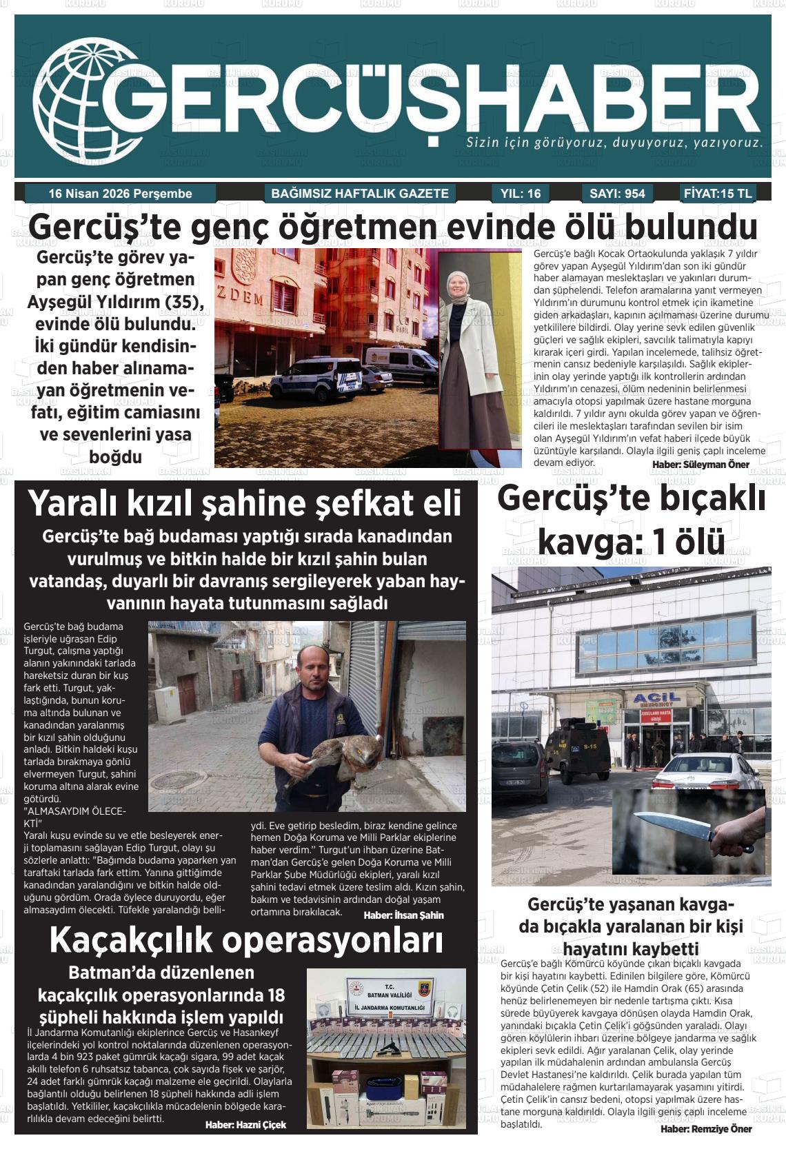 Batman Yerel Gazeteleri 16 Nisan 2026, Perşembe Günü Manşeti